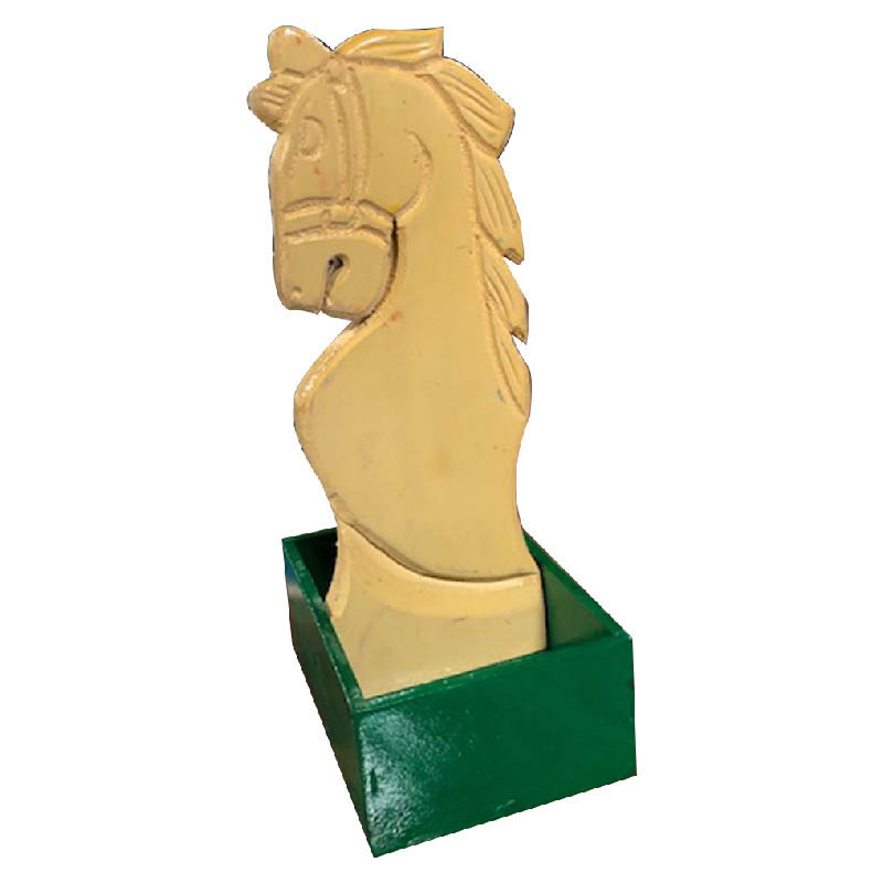 Portasalero Mexicano para Restaurantes en forma de callo, hechos de madera y en centro lleva tallada una figura del caballo color cafe.